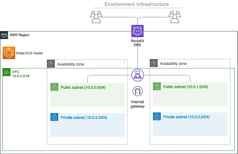 By default, Copilot creates a VPC per environment. But for production, you may want to use a pre-existing VPC with: