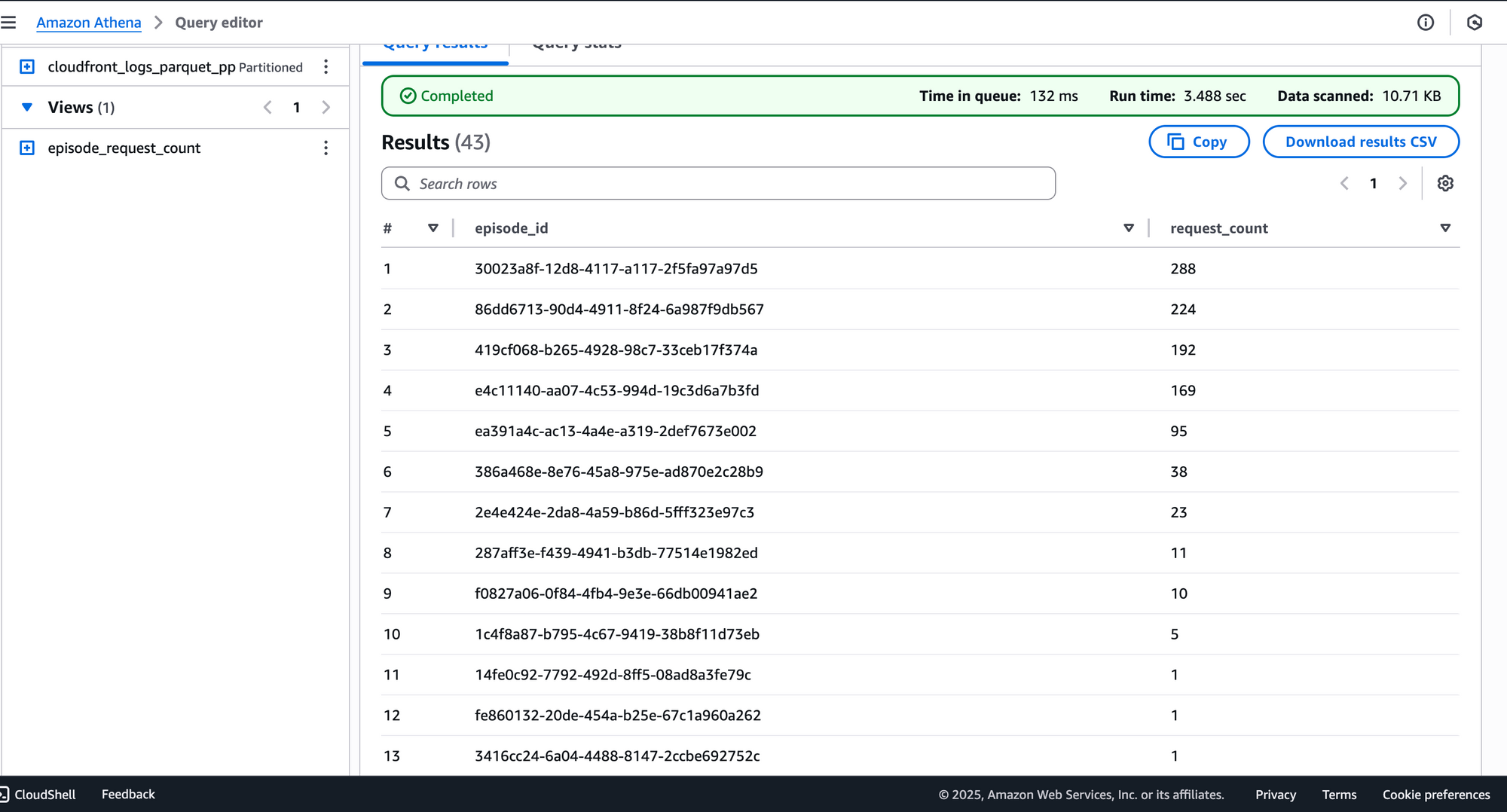 Here’s a practical query to count how many times each episode page was requested in October 2025: