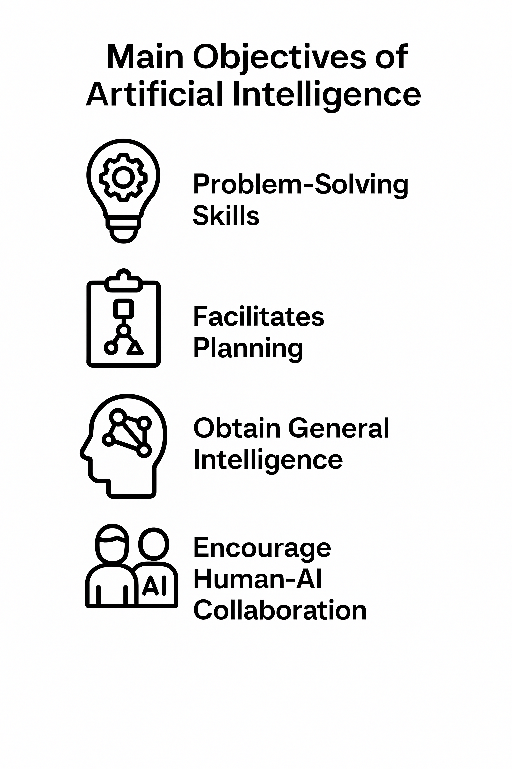 - Obtain General Intelligence: This is a significant goal of artificial intelligence, achievement general intelligence aims to replicate the full range of human cognitive abilities.