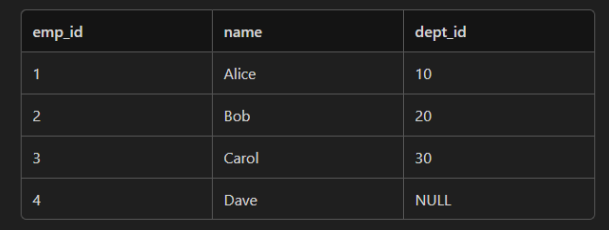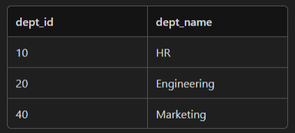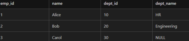 LEFT JOIN Departments d ON e.dept_id = d.dept_id;