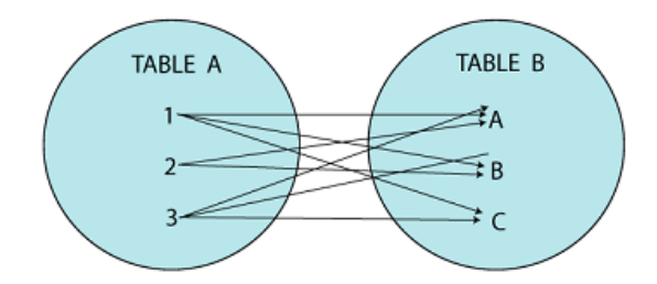 Definition: Returns the Cartesian product of both tables. Every row from the first table is combined with every row from the second table.