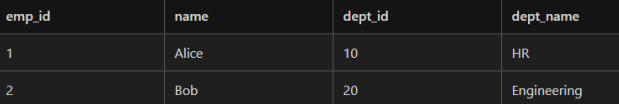 INNER JOIN Departments d ON e.dept_id = d.dept_id;